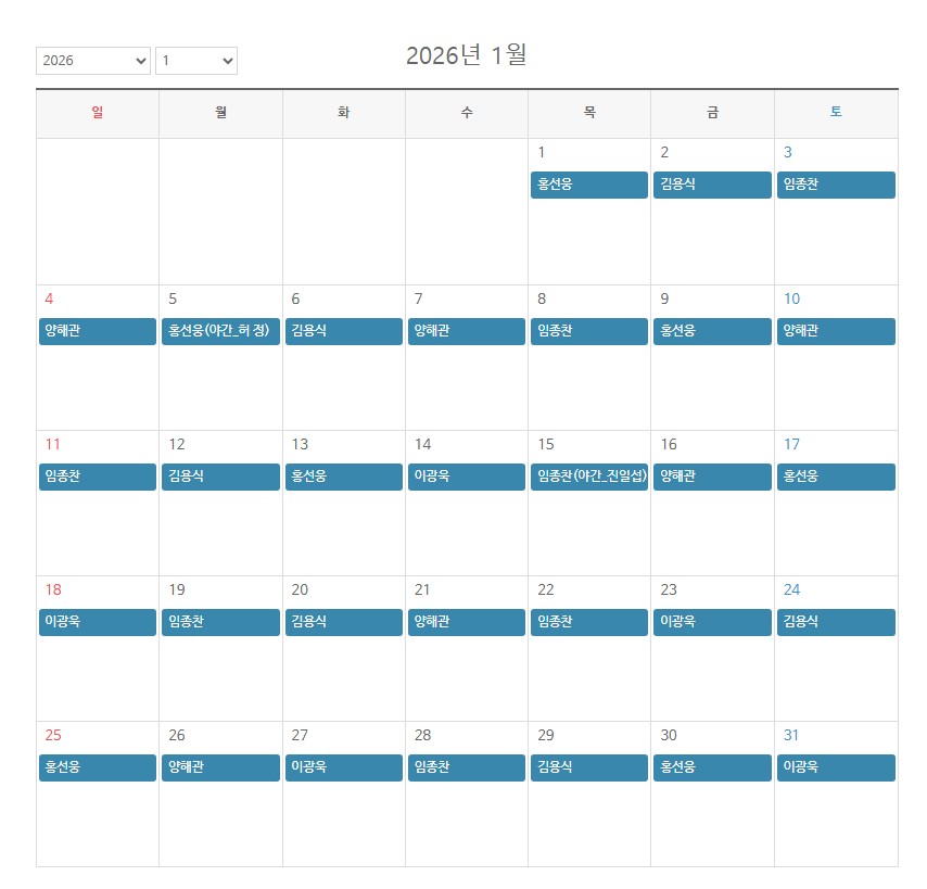 1월 소아과 스케줄